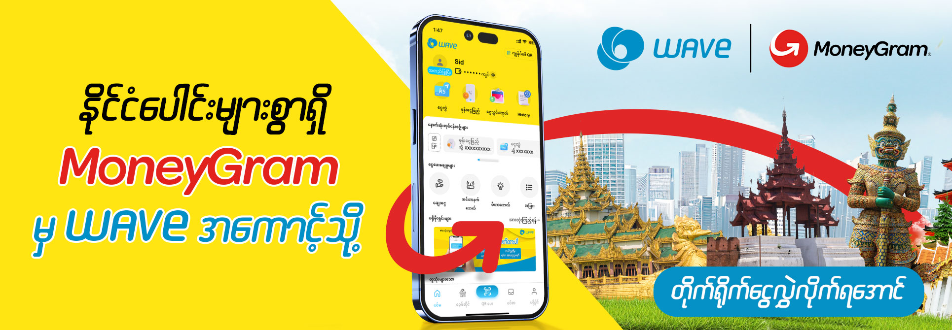 Digital Money Myanmar (Wave Money), Myanmar’s leading mobile financial services provider, is proud to announce a strategic partnership with MoneyGram International, a global leader in cross-border money transfers. Through this partnership, Myanmar customers can now receive international remittances via MoneyGram directly into their Wave Wallet, at any Wave Money agent location nationwide, or into a Yoma Bank account.