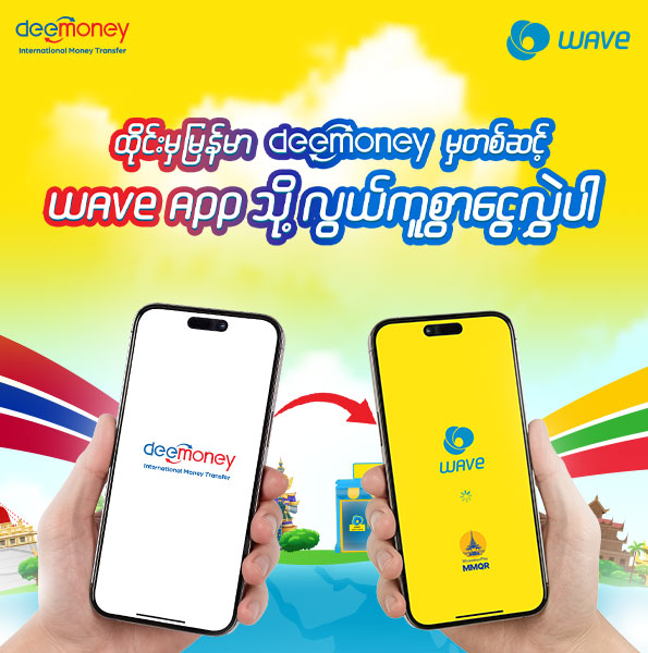 Wave Money á áááŻááşááśáááŹáá˝áąáá˝ážá˛áááşááąáŹááşáážáŻááťáŹá¸ááž ááźááşááŹáááŻááşááśáážá ááťá áşáááşááá˛áˇ ááááŹá¸á áŻáááşááťáŹá¸ááśáááŻáˇ ááŻáśááźáŻáśáá˝ááşáá°á á˝áŹ áá˝áąáá˝ážá˛áááŻáˇáááŻááşáĄáąáŹááş áá°ááŽááąá¸ááąááŤáááşá 2C2Pá DeeMoney áážááˇáş MoneyGram áá˛áˇáááŻáˇááąáŹ ááŻáśááźááşá áááşááťááááˇáş ááááşáááşááťáŹá¸áážáá áşáááˇáş áá˝áąáá˝ážá˛ááťáŹá¸ááᯠáááŻááşááśááąáŤááşá¸ ááá ááťáąáŹáşááž Wave Wallet áĄááąáŹááˇáşáááŻáˇ áááŻááşáááŻááşááąá¸áááŻáˇáááŻááşááááŻá áááŻááşááśááážááşá¸áážá áĄáąá¸ááťááˇáş áá,ááá ááťáąáŹáş áážáá áşáááşáˇáááşá¸ áá˝áąááŻááşáá°áááŻááşááŤáááşá